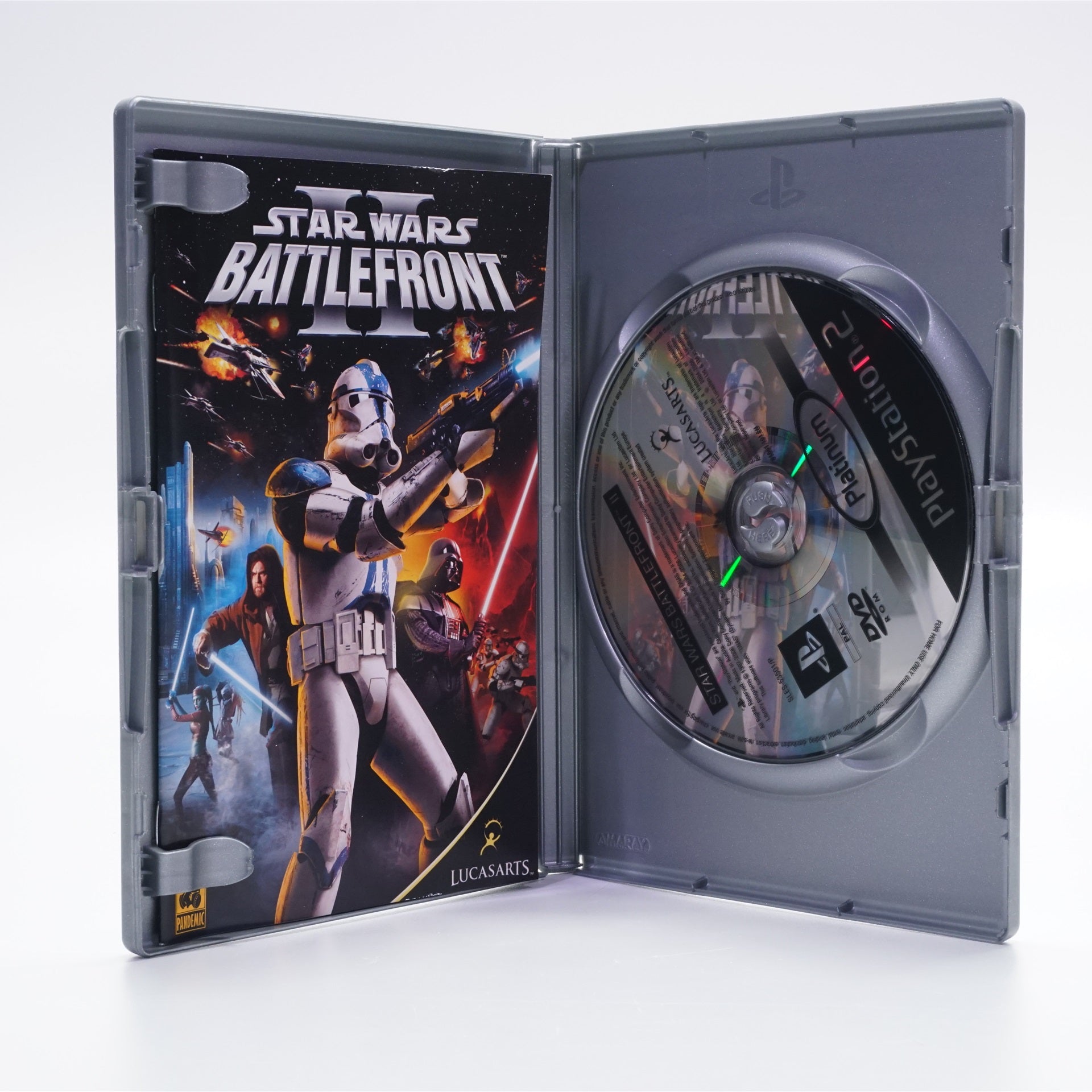 Star Wars Battlefront 2 [Platinum] na PS2 je kultová akčná strieľačka zo sveta Star Wars, v ktorej prežijete masívne bitky z prequelovej aj pôvodnej trilógie na ikonických miestach ako Hoth, Endor, Tatooine či Coruscant a po novom aj vo vesmíre. Bojujte v koži vojakov rôznych tried, šoférujte vozidlá a stíhačky (AT-AT, speeder, X-Wing, TIE Fighter) a ovládnite bojisko ako legendárni hrdinovia a zloduchovia vrátane Jediov, Sithov či Bobu Fetta. Hra ponúka príbehovú kampaň, obľúbený režim Galactic Conquest aj rýchle Instant Action, pričom nechýba lokálny split-screen pre dvoch hráčov. Edícia Platinum prináša osvedčený bestseller v striebornom prevedení ideálnom do zbierky – skvelá voľba pre fanúšikov retro hier aj Star Wars.