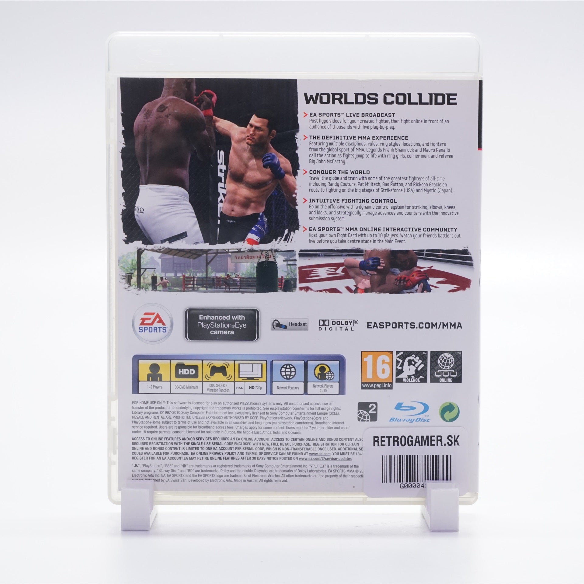 EA Sports MMA pre PlayStation 3 prináša intenzívne súboje zmiešaných bojových umení s realistickou fyzikou úderov, klinču aj práce na zemi. V kariérnom režime si vytvoríte vlastného bojovníka, trénujete v gymoch po celom svete a prebojujete sa cez turnaje až k titulovým zápasom, pričom nechýbajú rýchle exhibície ani turnajové výzvy. Čaká vás hviezdne obsadenie reálnych fighterov, rôzne váhové kategórie a autentická atmosféra arén, ktorú podčiarkuje plynulá prezentácia na PS3 a intuitívne ovládanie. Hra podporuje singleplayer aj lokálny multiplayer (online funkcie môžu byť obmedzené). Skvelá voľba do retro zbierky pre fanúšikov MMA a športových hier, ktorí hľadajú technickú hĺbku aj okamžitú akciu.