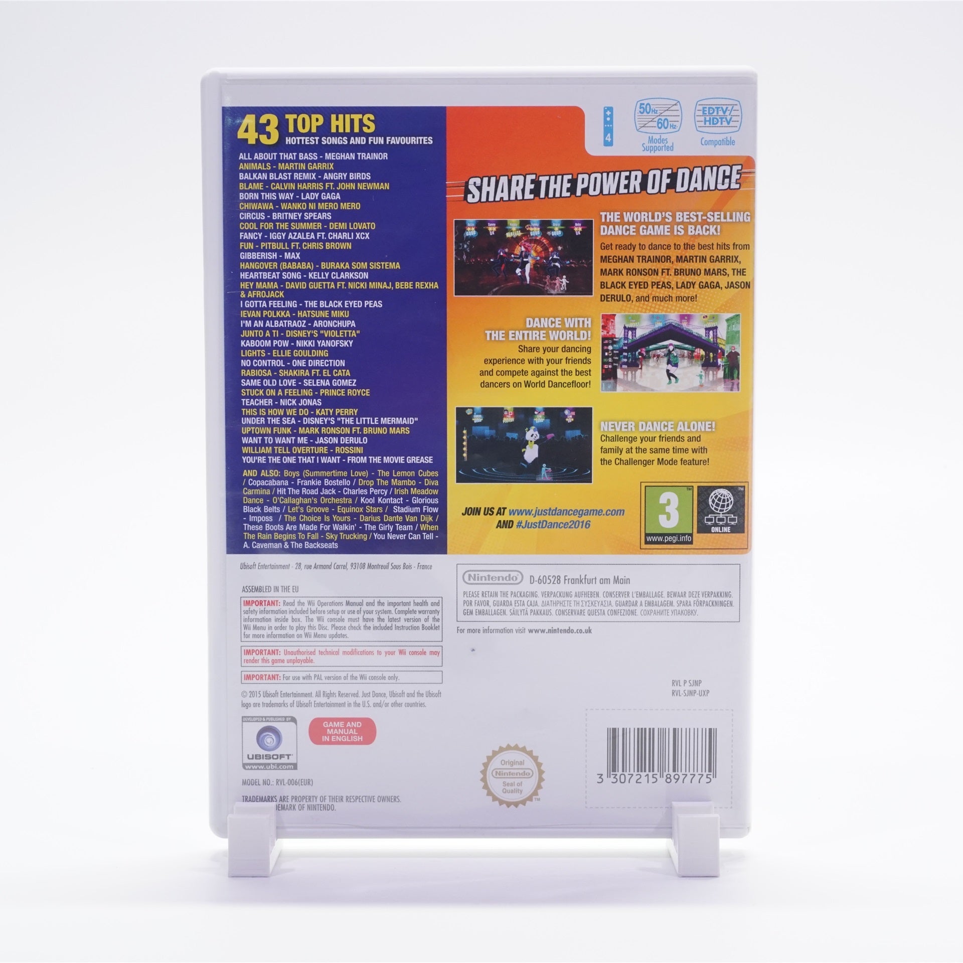 Just Dance 2016 na Nintendo Wii je neprehliadnuteľná párty klasika, ktorá rozhýbe každú obývačku – stačí chytiť Wii Remote a kopírovať choreografie na obrazovke. Čakajú vás svižné tancovačky na aktuálne popové hity od hviezd ako Bruno Mars, Meghan Trainor, Jason Derulo či David Guetta, viac úrovní náročnosti a alternatívne zostavy pre začiatočníkov aj profíkov. Hra hodnotí presnosť pohybov, motivuje k prekonávaniu rekordov a ponúka aj Sweat režim na spálenie kalórií zábavnou formou. V lokálnom multiplayeri sa zabavia až štyria hráči naraz – ideálne na rodinné večery, oslavy a všetky retro herné stretnutia. Funguje na konzole Nintendo Wii (a na Wii U v režime spätnej kompatibility).