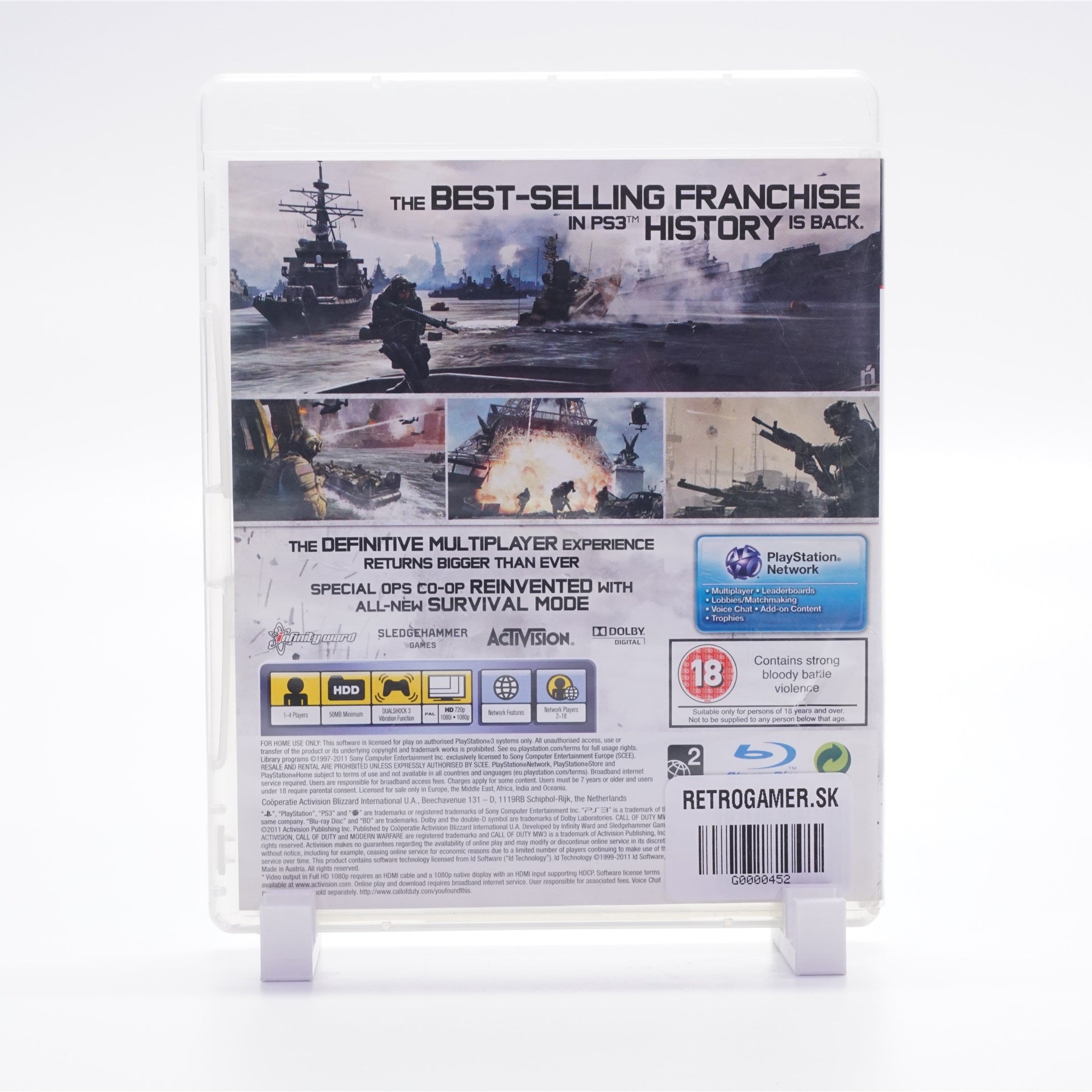 Call of Duty: Modern Warfare 3 na PS3 je adrenalínová FPS od Infinity Ward a Sledgehammer Games (2011), ktorá uzatvára ikonickú trilógiu Modern Warfare filmovou kampaňou plnou globálneho konfliktu s misiami v New Yorku, Londýne či Paríži. Legendárny multiplayer ponúka rýchlu hrateľnosť, strike balíčky (Assault/Support/Specialist), bohatý progres, odomykanie zbraní a príslušenstva a obľúbené režimy ako Team Deathmatch, Domination či Search and Destroy. Nechýbajú kooperatívne Špeciálne operácie (Spec Ops) a napínavý Survival režim, ktoré podporujú aj lokálne hranie na delenej obrazovke – ideálne do retro zbierky a na zábavu aj bez internetu. Disk pre PlayStation 3; online funkcie vyžadujú PSN a nemusia byť v súčasnosti dostupné. PEGI 18.
